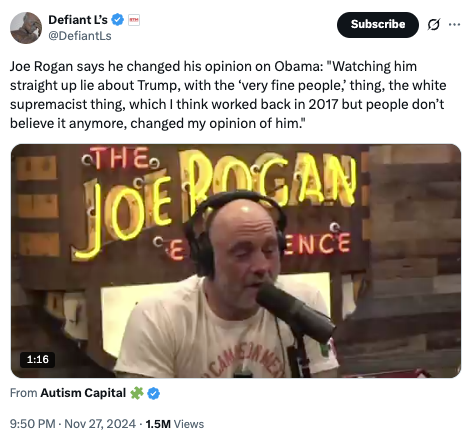 As as far as Obama's character, it was already in question. I agree completely with Joe Rogan.