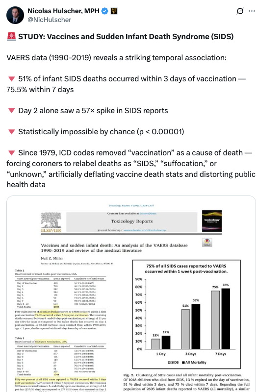 •He asserted VAERS overreports vaccine injuries when in reality less than 1% of injuries make it into VAERS (as the government never wanted a publicly available injury database and once a law forced its creation, the government has worked for decades to undermine VAERS).