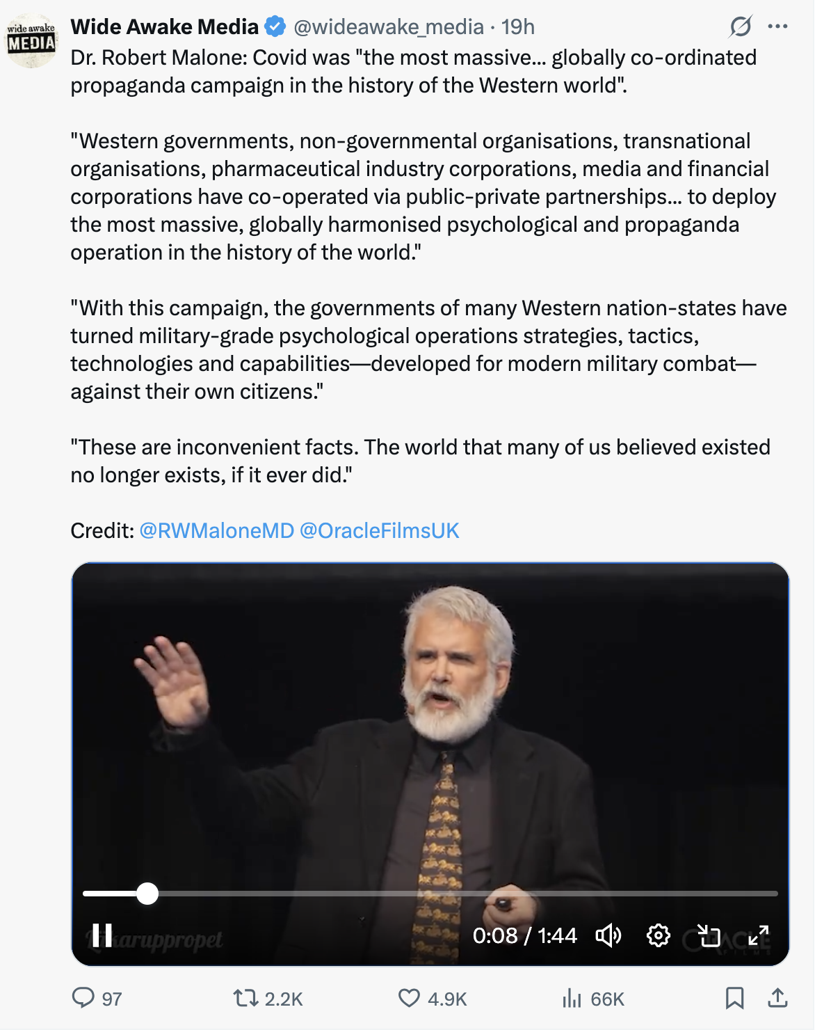 Covid was "the most massive... globally co-ordinated propaganda campaign in the history of the Western world".