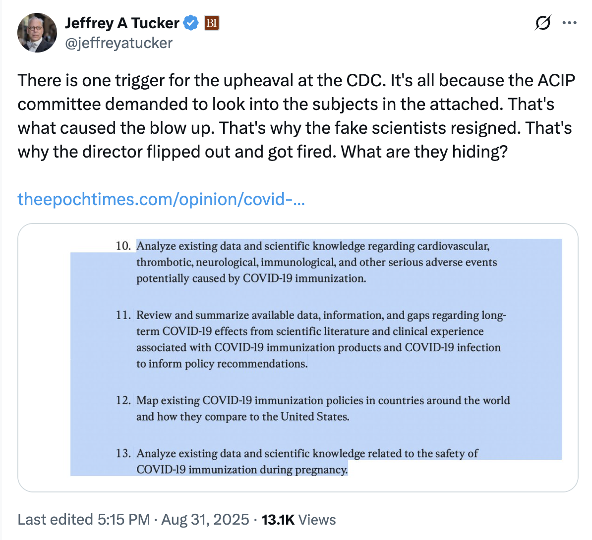 About half of Americans hear these numbers and we are concerned. We want vigorous transparent independent investigations and we don't trust Big Pharma or the corrupt CDC and FDA from years past based on thousands of deaths caused by Pharma over the years (e.g., OxyContin, Fentanyl, Vioxx). The other half of Americans, many of whom used to be the type of Democrats who sharply criticized Big Pharma (and censorship and war), have recently first-hand seen the demise of a dozen major COVID lies by Pharma and their own government. They nevertheless seek to censor those who point out disturbing data regarding vaccines.
